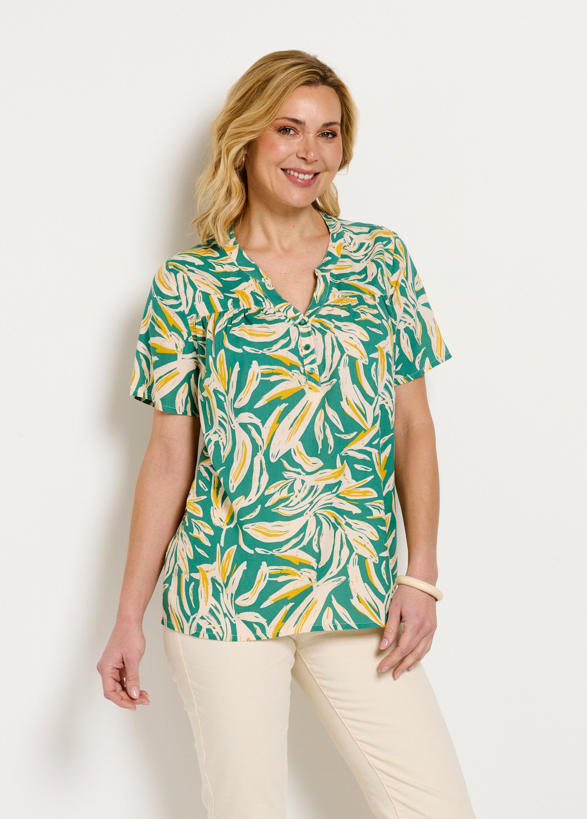 Loose_printed_buttoned_V-neck_tunic_Green_and_white_FA1_slim Loose_printed_buttoned_V-neck_tunic_Green_and_white_DO1_slim