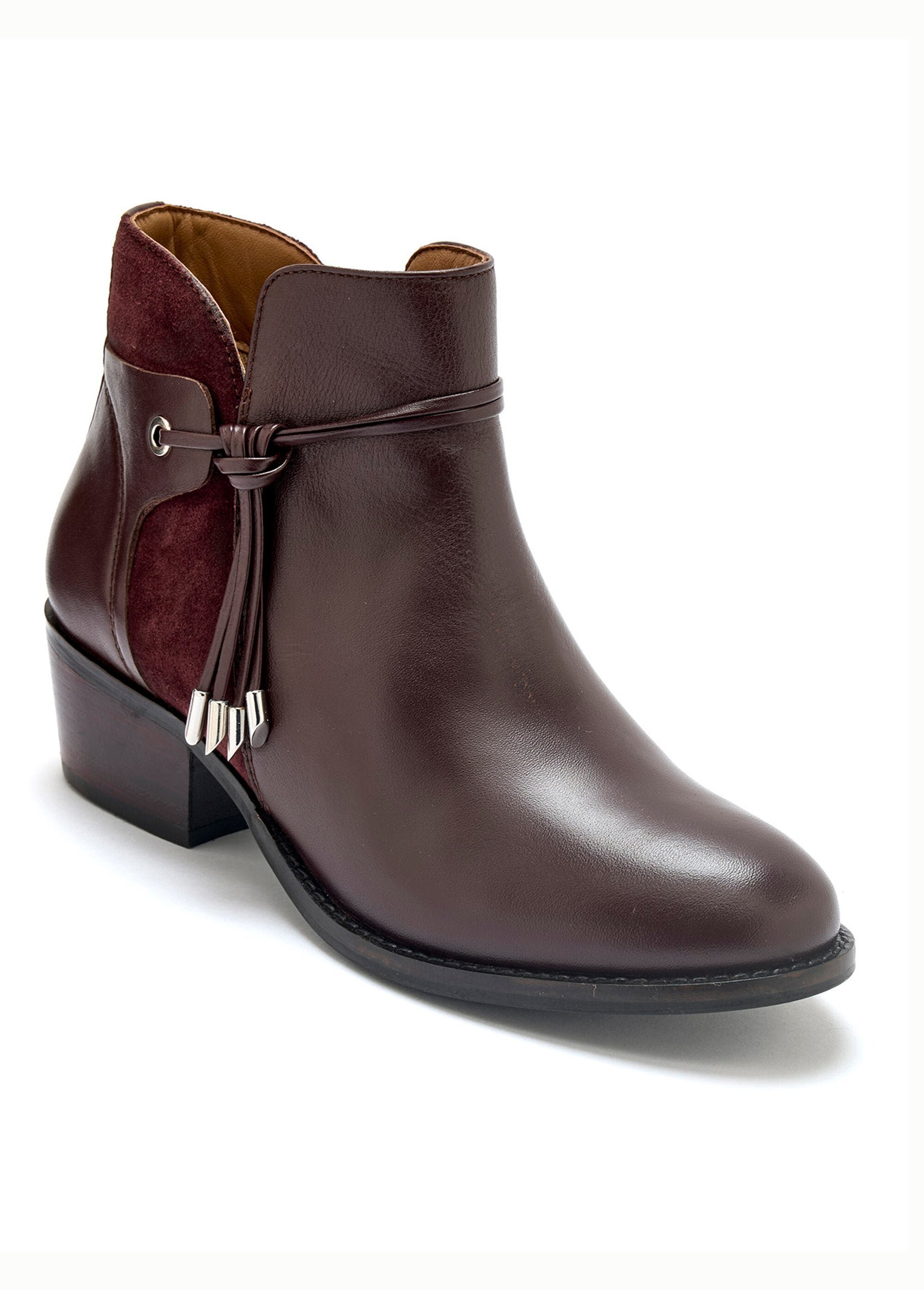 Pédiconfort® Western-style boots skillfully combine smooth and suede leather, offering a textured contrast that enhances their look. Featuring a small, beveled heel, these shoes offer an elegant, slightly elevated silhouette typical of Western design. A trendy tie adorns these boots, adding a fashionable and contemporary detail. The zipper closure makes them easy to put on while ensuring a secure and comfortable fit.