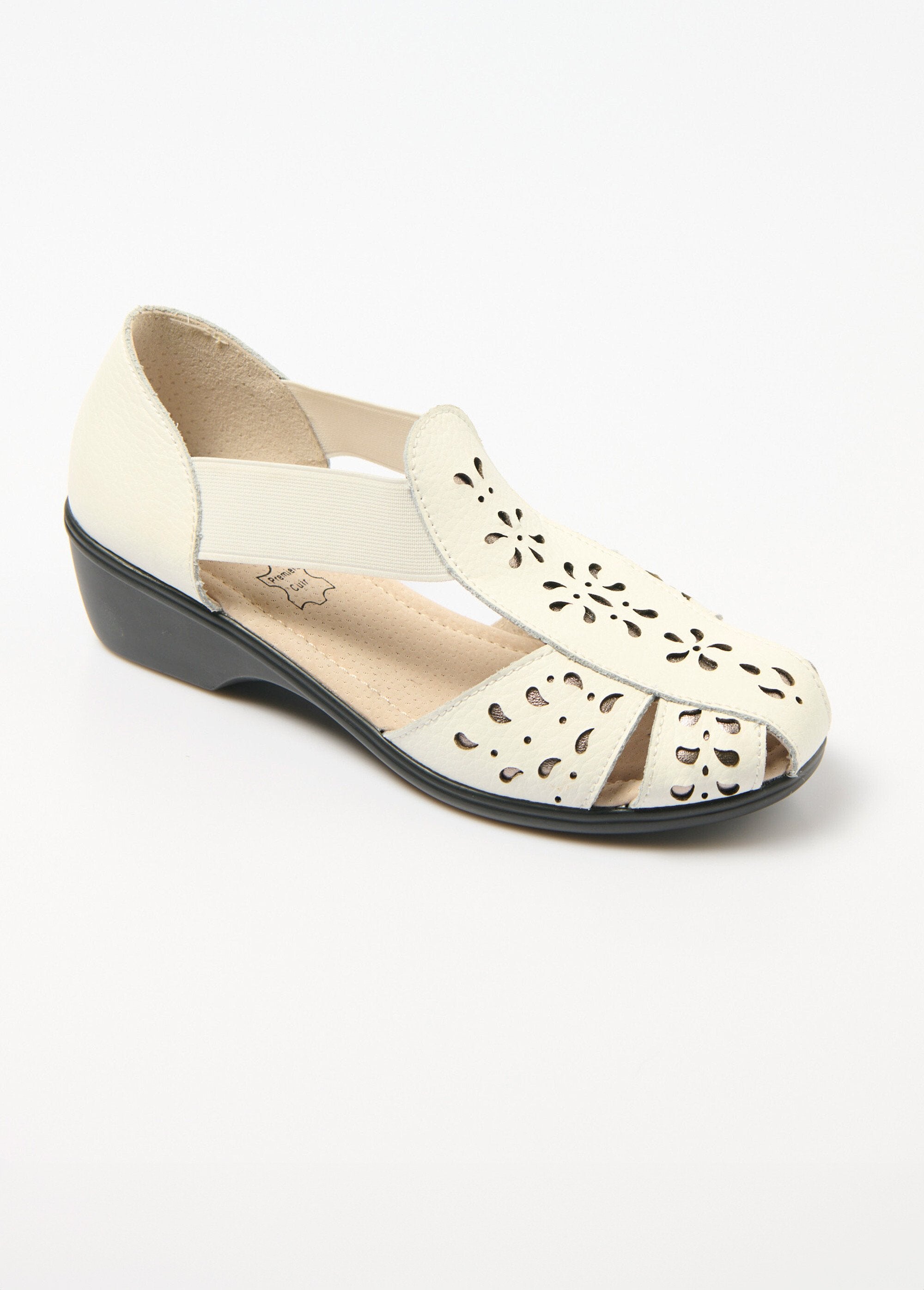 Trendy in bronze, timeless in navy, summery in white... You'll love wearing these sandals with a slightly wedge heel. A modern and feminine line with elastic on each side for easy on and a secure and comfortable fit. Zoom in on the perforated details that add style and on their foam insole that adds comfort. And for excellent protection, the heel and the front toe are closed.