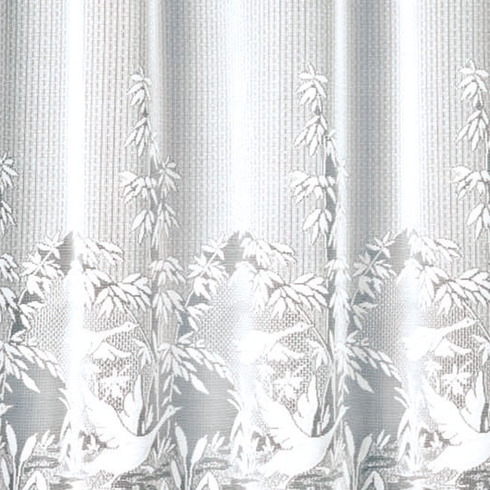 To elegantly shield you from view, majestic swans have taken possession of this superb lace panel. High-quality workmanship finished with an overlocked braid on the sides. Delivered ready to hang with gathering ribbon and hooks. Made in France. This product is certified OEKO-TEX® STANDARD 100 by OEKO-TEX® (No. CQ 1236/1 IFTH)
