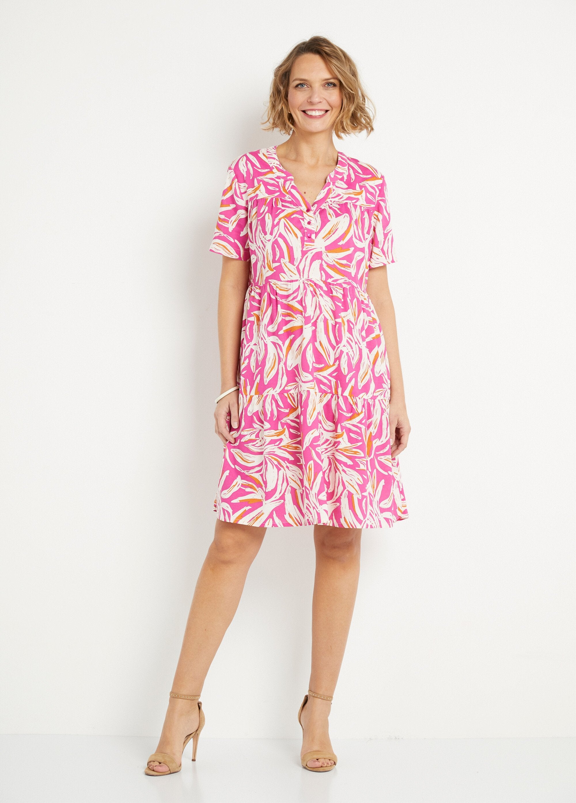 Printed_buttoned_V-neck_dress_with_short_sleeves_Pink_and_white_FA1_curvy