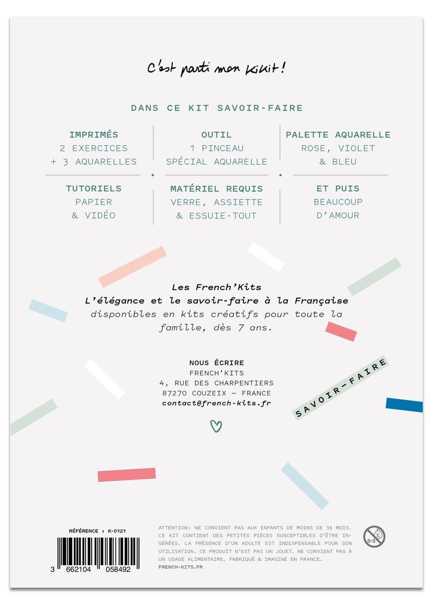 French'Kits is an easy way to learn watercolor and gradually introduce color gradation, without any prior knowledge or special equipment. It's a great way to get ready for Christmas with your family, in a joyful, creative, original and personalized way... The pleasure of creating, the joy of sharing! The ''belles anémones'' watercolor kit lets you create a superb floral decoration of leaves and anemones. It includes: 1 progressive method with 2 exercises and 3 watercolors, 1 special watercolor brush, 1 palette with pink, violet and blue colors. Delivered with paper instructions, video tutorial available by downloading the application on french-kits.fr